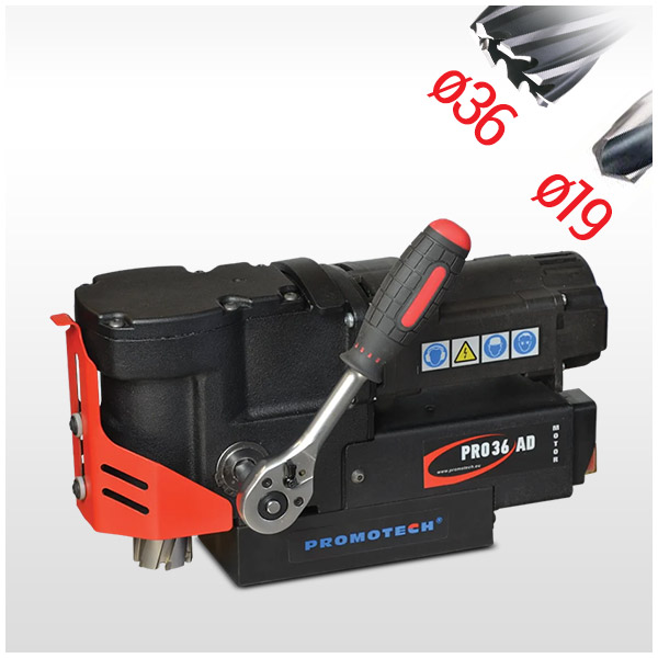 A PRO-36 AD egy rendkívül alacsony profilú magfúró, amely a legszűkebb helyeken is elfér. Tökéletes megoldás minden olyan alkalmazáshoz szűk helyeken, ahol a tipikus magfúrók túl nagyok. Az erős motor és az erős elektromágneses alap lehetővé teszi akár 36mm átmérőjű lyukak fúrását akár 30mm mélységig.A PRO-36 AD egyaránt használható TCT és HSS vágó- és maró szerszámokkal, valamint 19,05mm-es Weldon szárú csigafúrókkal.